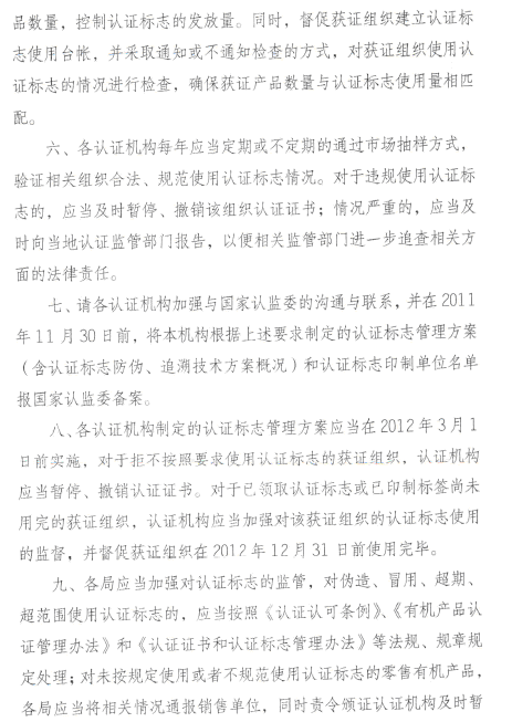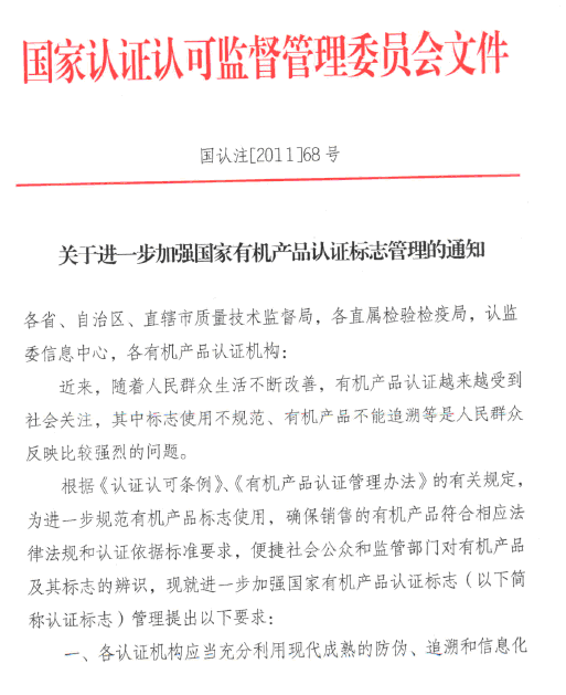 進一步加強國家有機產(chǎn)品認證標志管理的通知