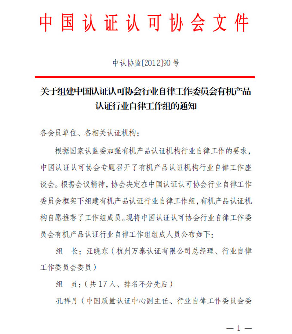 為加強(qiáng)有機(jī)產(chǎn)品認(rèn)證機(jī)構(gòu)行業(yè)自律,4月23日我機(jī)構(gòu)總經(jīng)理加入了中國(guó)認(rèn)證認(rèn)可協(xié)會(huì)組建的有機(jī)產(chǎn)品認(rèn)證行業(yè)自律工作組。
