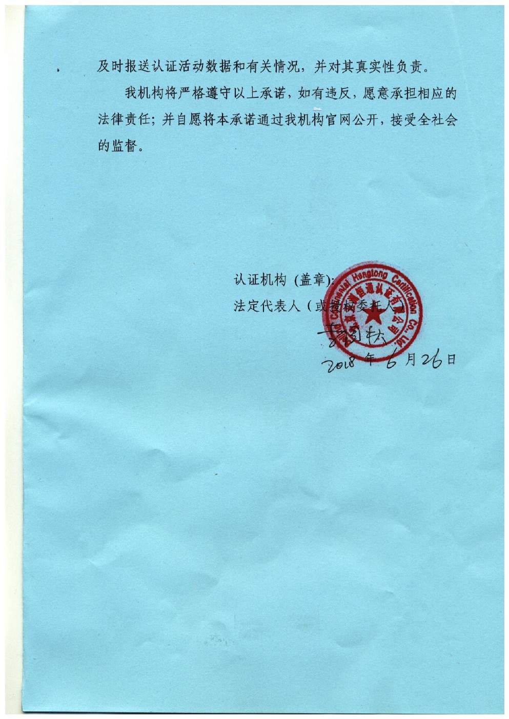 認證機構自我承諾書