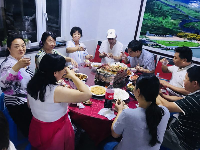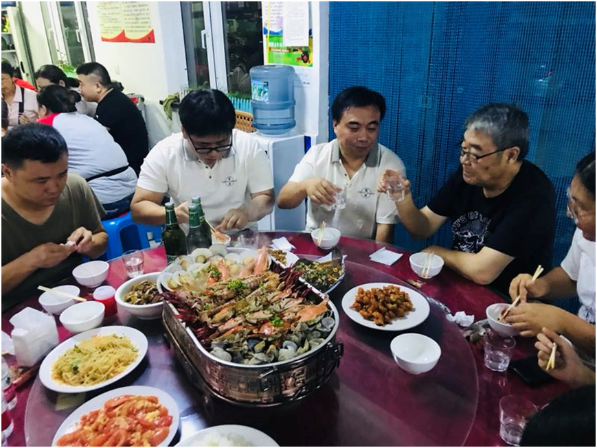 入住添然漁家院后,大家在品嘗美味佳肴的同時(shí),開懷暢飲,歡唱卡拉OK,其樂融融。