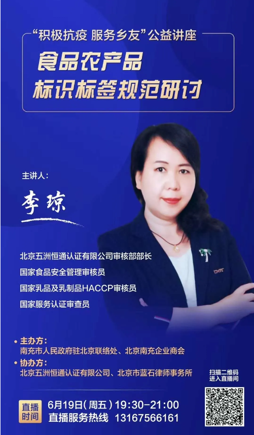 突如其來(lái)的新冠肺炎疫情,對(duì)全球食品供應(yīng)產(chǎn)生一些列負(fù)面影響,我國(guó)在積極落實(shí)疫情防控的同時(shí),采取應(yīng)急響應(yīng),并高度重視民生問(wèn)題,開(kāi)展“保價(jià)格、保質(zhì)量、保供應(yīng)”行動(dòng)。2020年6月19日,五洲恒通受主辦方南充市人民政府駐北京聯(lián)絡(luò)處、北京南充企業(yè)商會(huì)邀請(qǐng),以“食品農(nóng)產(chǎn)品標(biāo)識(shí)標(biāo)簽規(guī)范”為主題開(kāi)展“積極抗疫 服務(wù)鄉(xiāng)友”公益講座,助力生產(chǎn)企業(yè)復(fù)工復(fù)產(chǎn),幫助消費(fèi)者更好選擇食品、農(nóng)產(chǎn)品。本次活動(dòng)由北京五洲恒通認(rèn)證有限公司、北京市藍(lán)石律師事務(wù)所協(xié)辦,共計(jì)5280余人次參加直播講座。