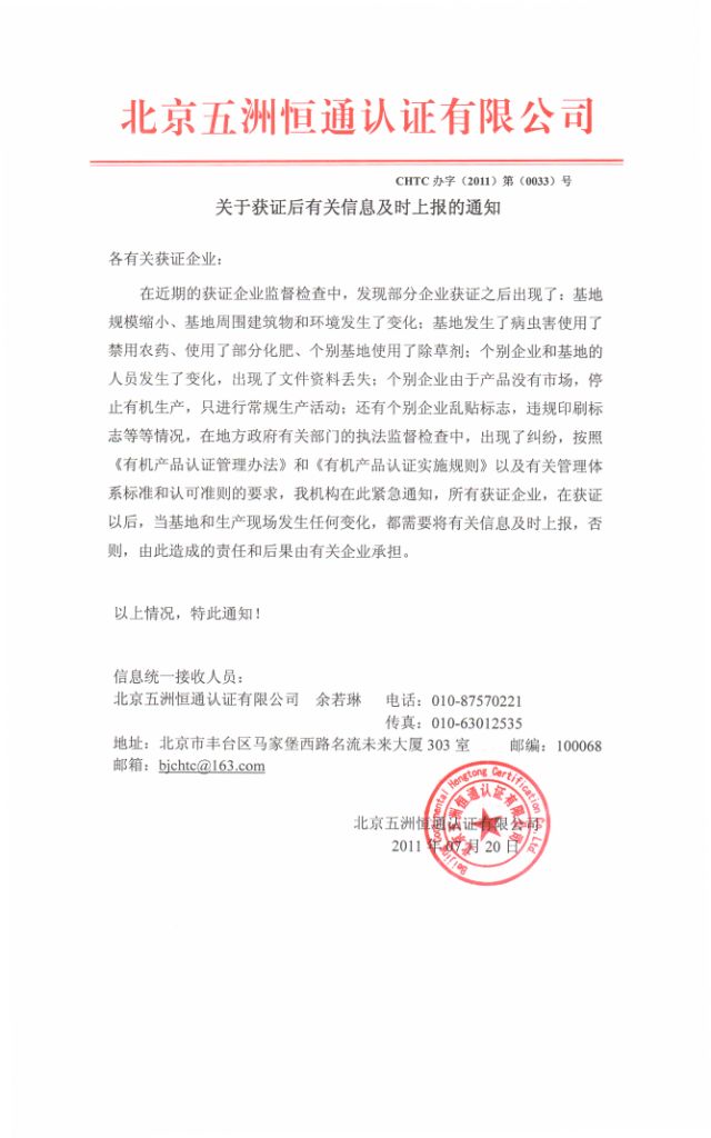 上一篇:關(guān)于有機(jī)產(chǎn)品獲證企業(yè)非例行檢查的緊急通知