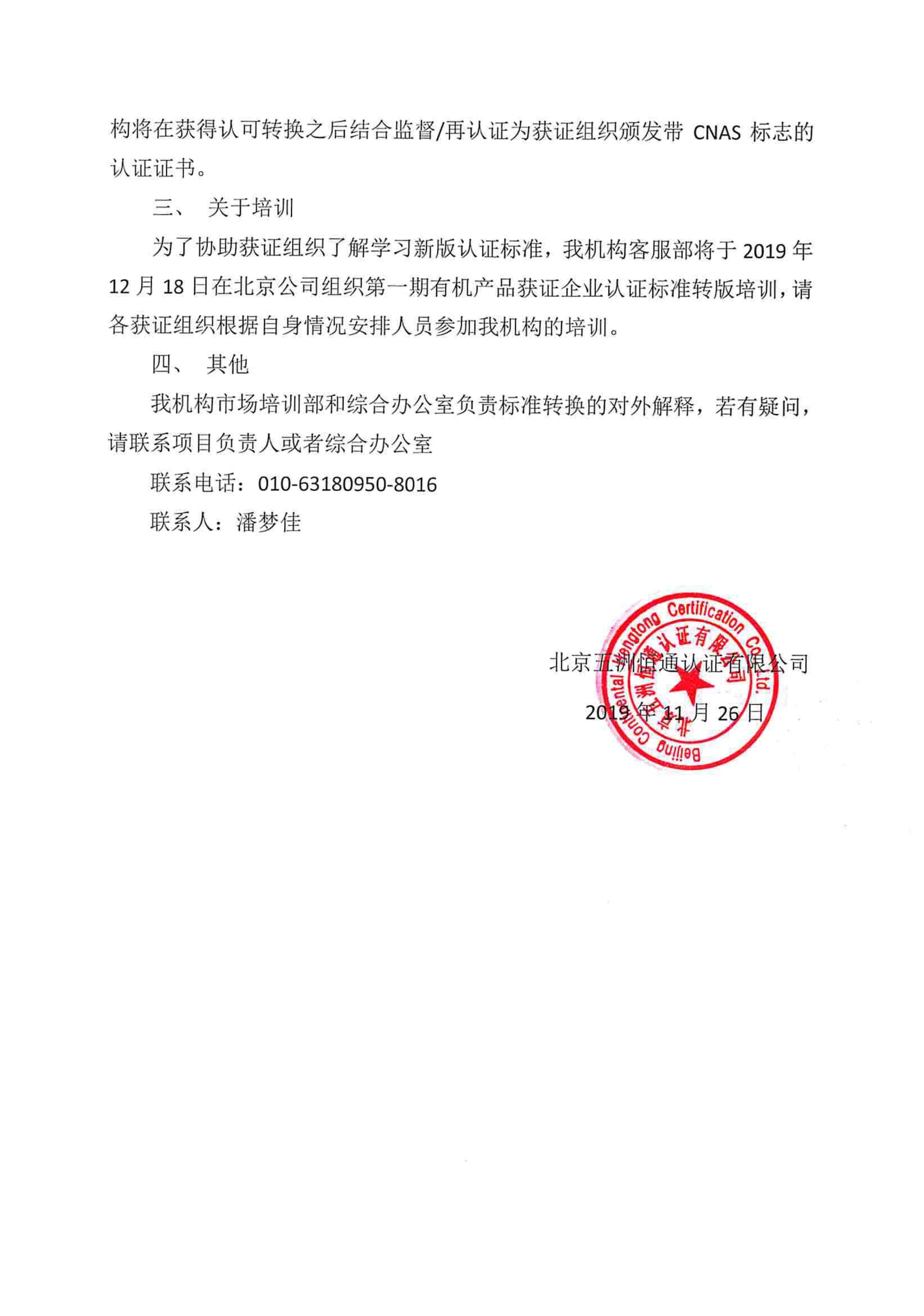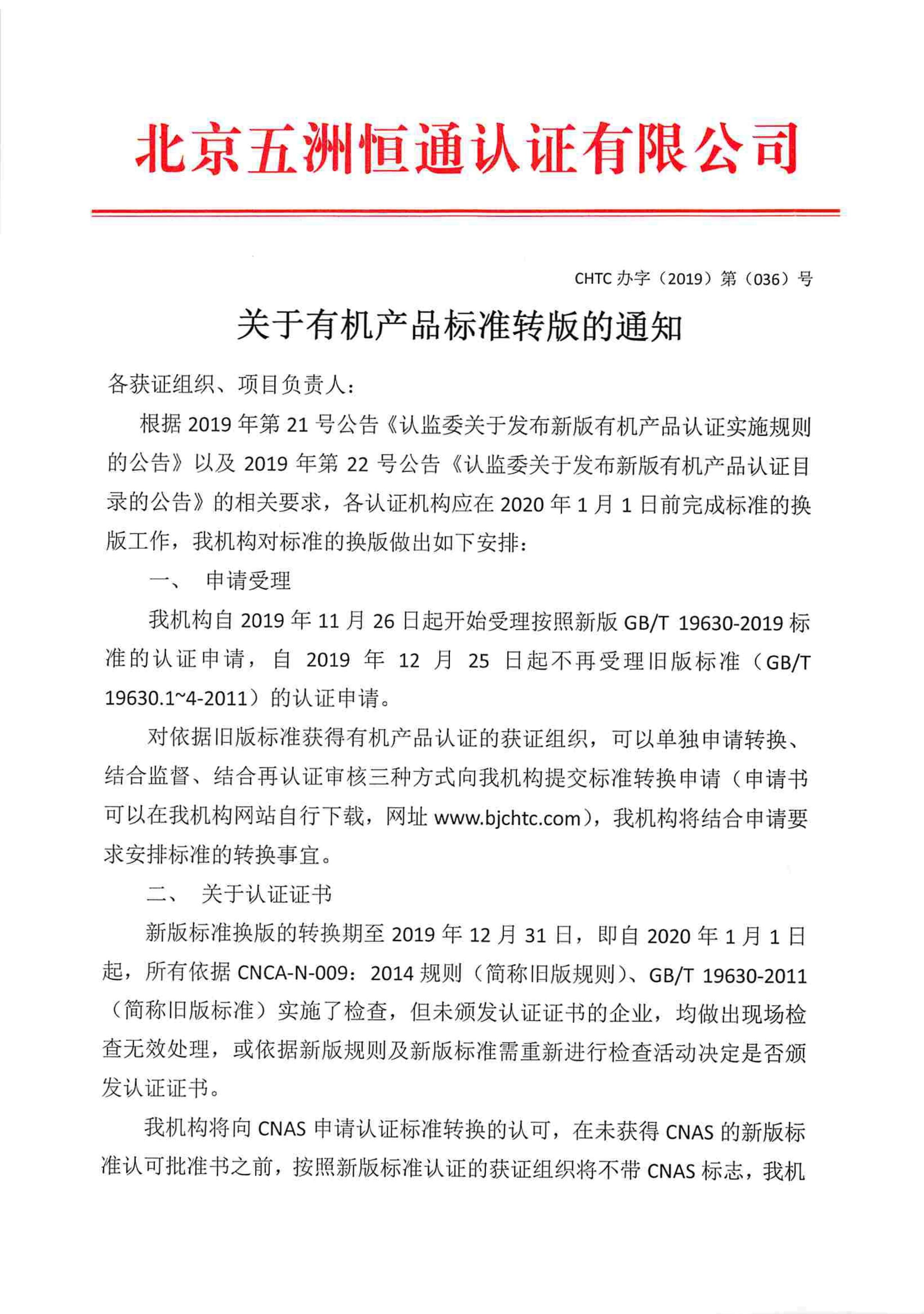 有機(jī)標(biāo)準(zhǔn)轉(zhuǎn)換通知