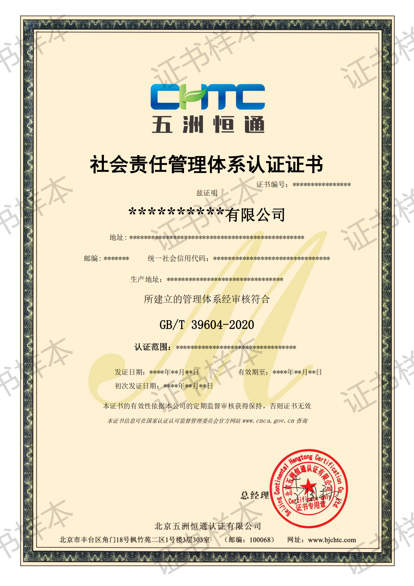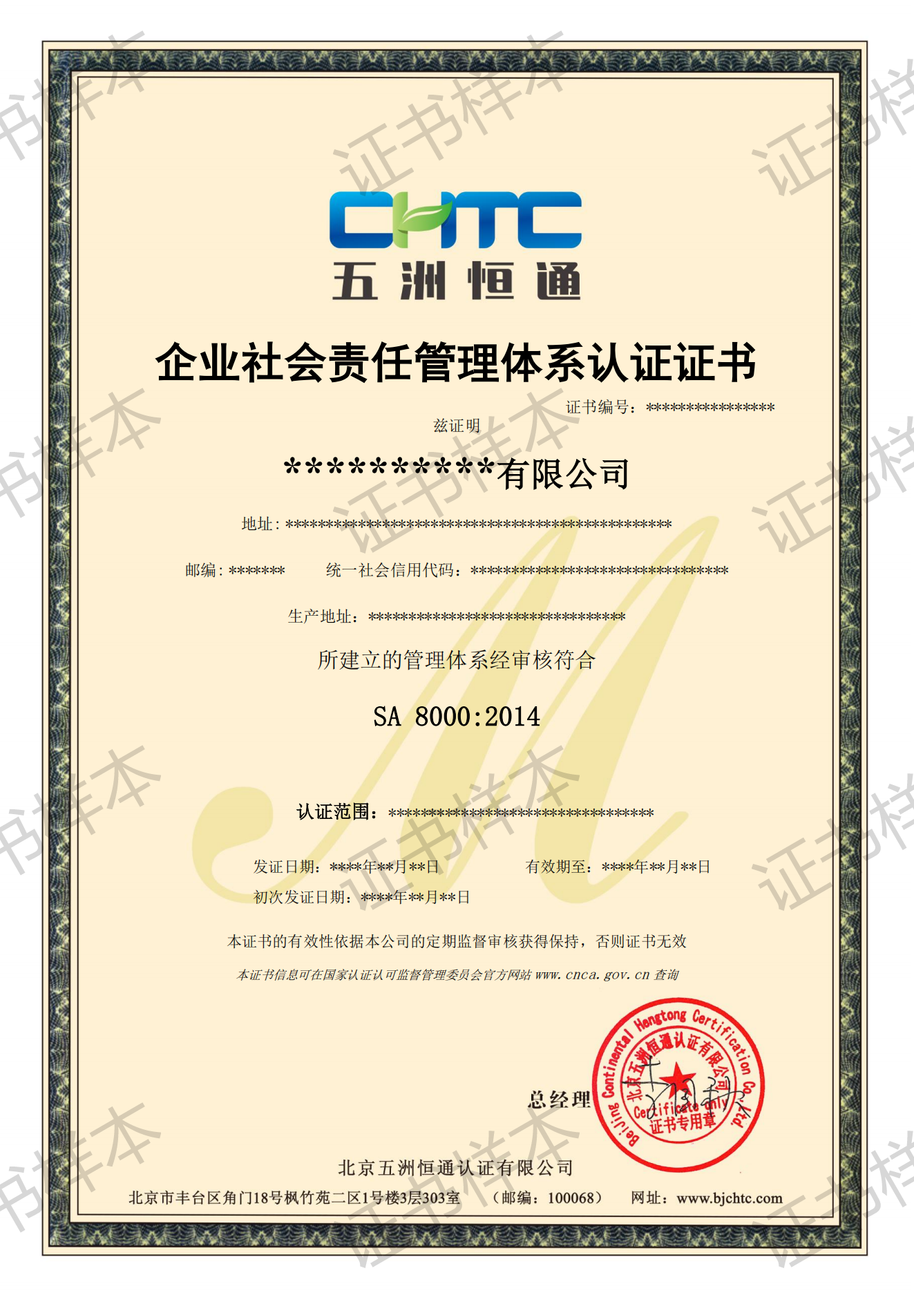 認(rèn)證證書(shū)樣本
